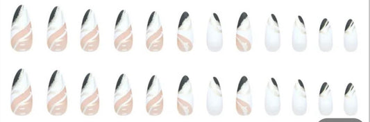 Black & White with Glitter & Gold Swirls - Almond #W529