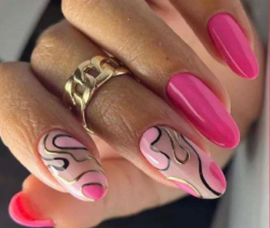 Bright Pink & Pale Pink with Black & Gold Outlines - Almond #W855