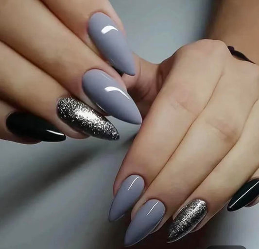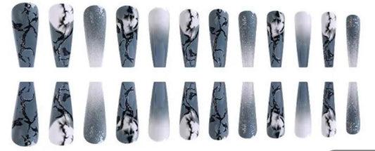 Grey, Black & White Marble & Silver Glitter - Coffin #LF343