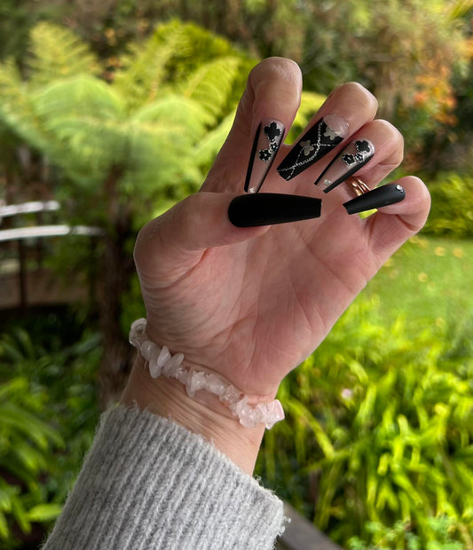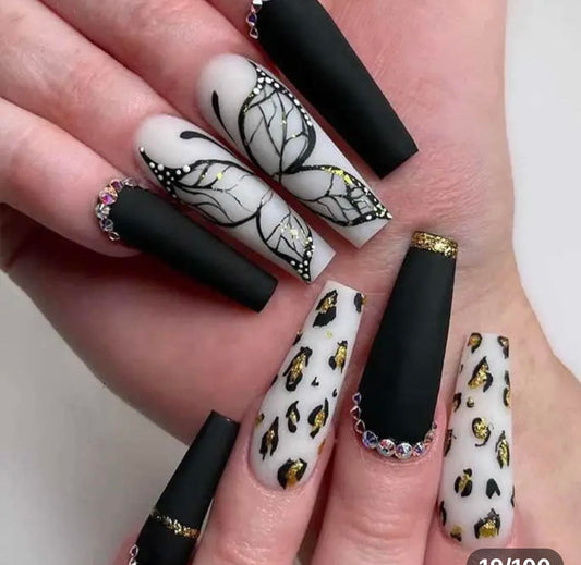 Black, Gold Butterflies & Jewels - Coffin #194