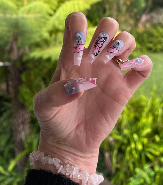 Clear Pink with Butterflies & Cherries - Coffin #216