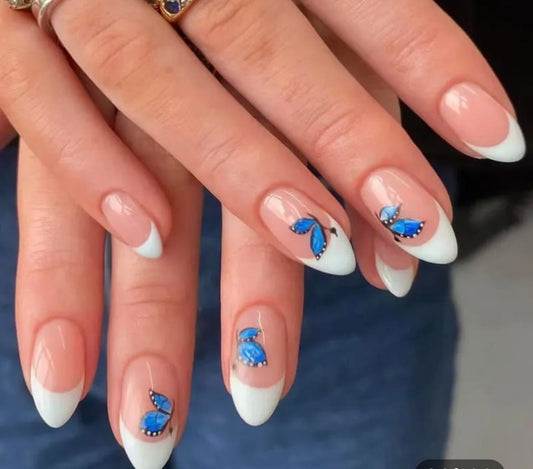 White Tips with Blue Butterflies - Almond #W192