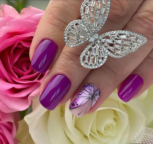 Dark Magenta with Butterflies - Squoval #W481