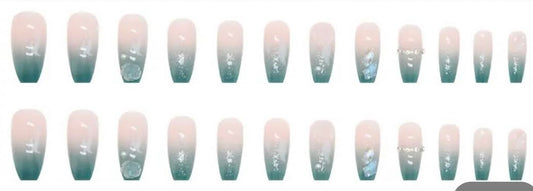 Blue Green & Pink Ombre Rose & Glitter Coffin #360