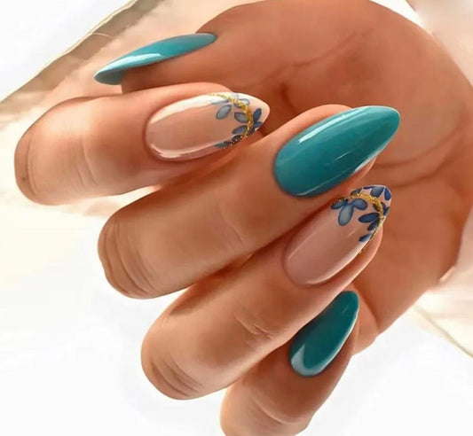 Cool Teal & Pale Pink with Blue Flowers - Almond #W537
