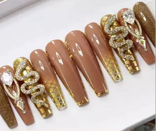 Mocha & Gold Glitter with Jewels & Snakes - Coffin #Z510