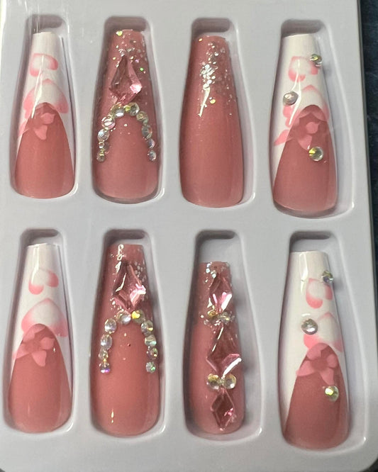 Ombre Pink & White with Jewels - Coffin #W054