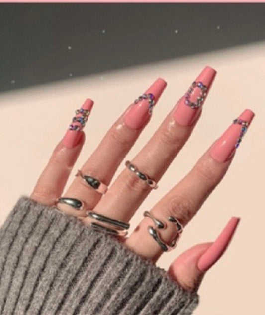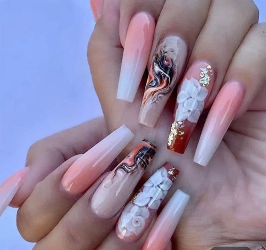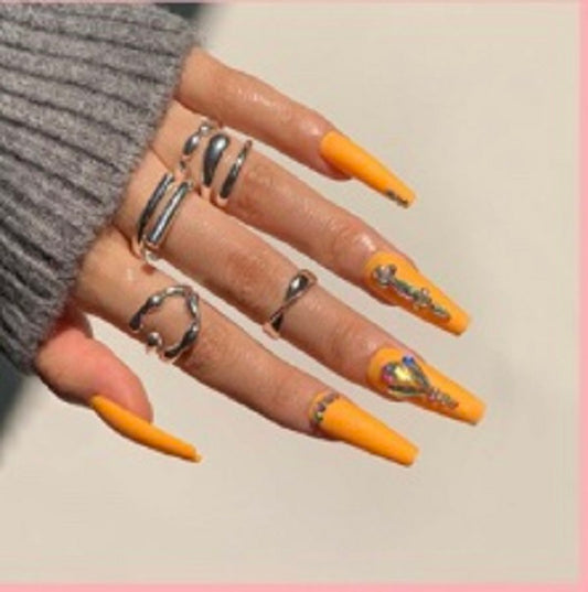 Orange, Clear & Frosted with Glitter, Jewels, Hearts & Flowers - Coffin #Z509