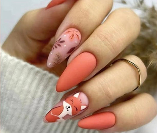 Fox - Warm Orange & Pale Pink with Leaves - Almond #W1475