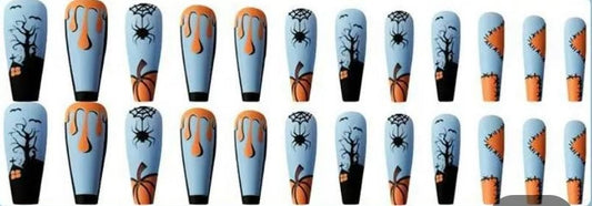 Orange & Blue with Spiders & Pumpkins - Coffin #CY118