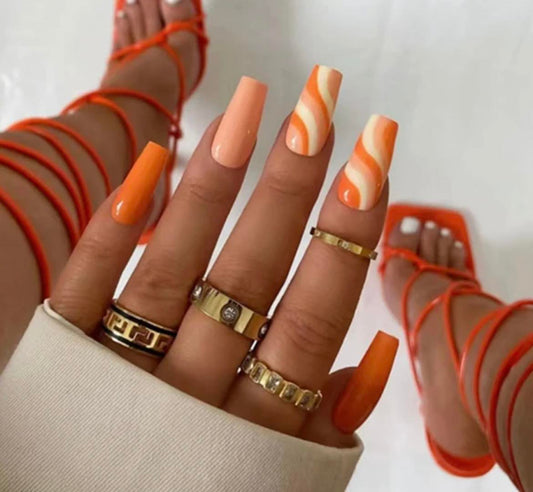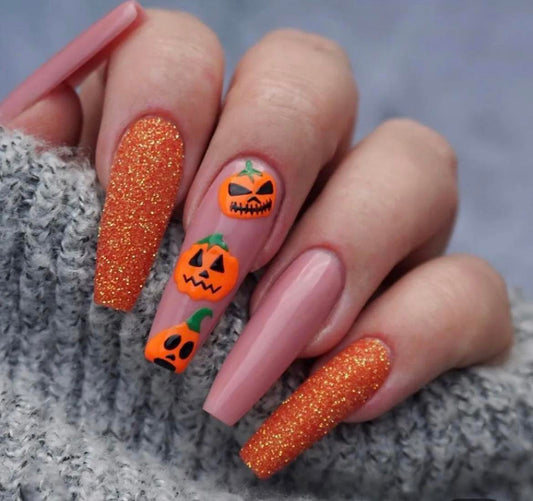 Orange with Glitter & Peach with Pumpkins - Coffin #JP1248