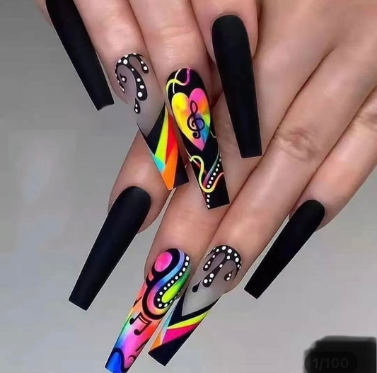 Black & Multi Coloured with Musical Notes - Coffin#LF610