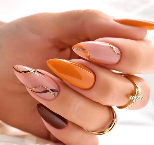 Orange, Russet Brown & Pale Pink with Swirls - Almond #W256