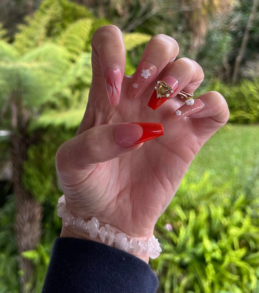 Orange, Clear & Frosted with Glitter, Jewels, Hearts & Flowers - Coffin #Z509