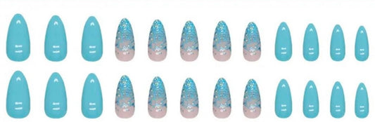 Turquoise & Pale Pink with Turquoise Glitter - Almond #W1000