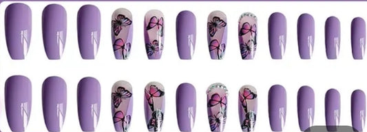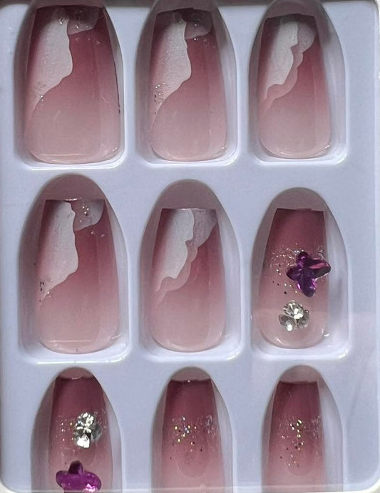 Mauve with White Clouds, Purple Butterflies & Jewels - Short Coffin #Z491