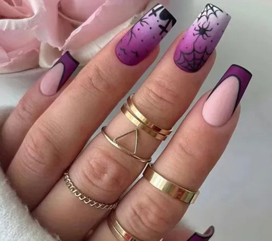 Purple with Black Spiders, Web & Bats - Coffin #W844