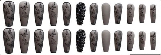 Black with Butterflies & Black Jewels - Coffin #LF653