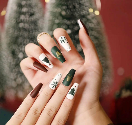 Christmas Theme - Green & White & Deep Red & Trees - Coffin #SD010