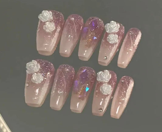 Cream/Taupe Ombre with Lilac Jewels & Glitter and White Roses - Coffin #Z526