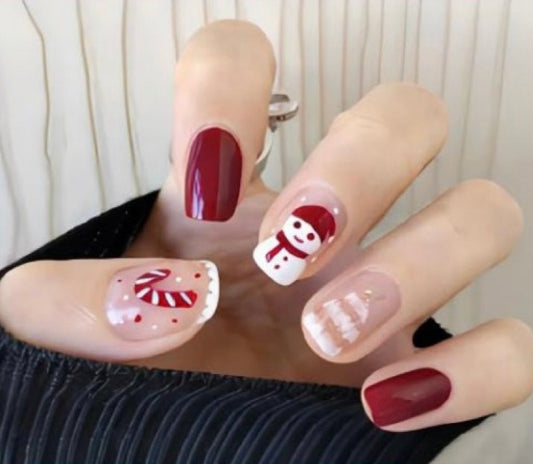 Christmas Theme - Dark Red with Snowmen & Candy Canes - Squoval #R620