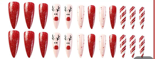 Christmas Theme - Red with Reindeers & Red & White Swirls - Stiletto #CY430