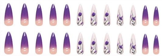 Purple & Pink Ombre & White with Purple Flowers - Stiletto #W663