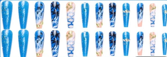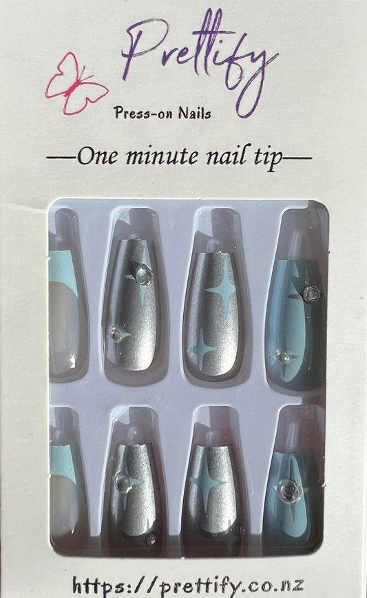 Dark Blue & Pale Blue with Gold Glitter & Grey with White Tips & Jewels - Coffin #BKS1519