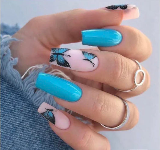 Turquoise & Pale Pink with Turquoise Glitter - Almond #W1000