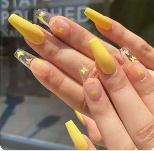 Clear with White Flowers & Yellow with Gold Butterflies - Coffin #Z421