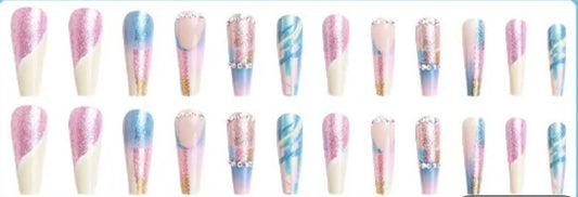 Pale Pink, Blue & Yellow with Glitter & Jewels - Coffin #BKS1517