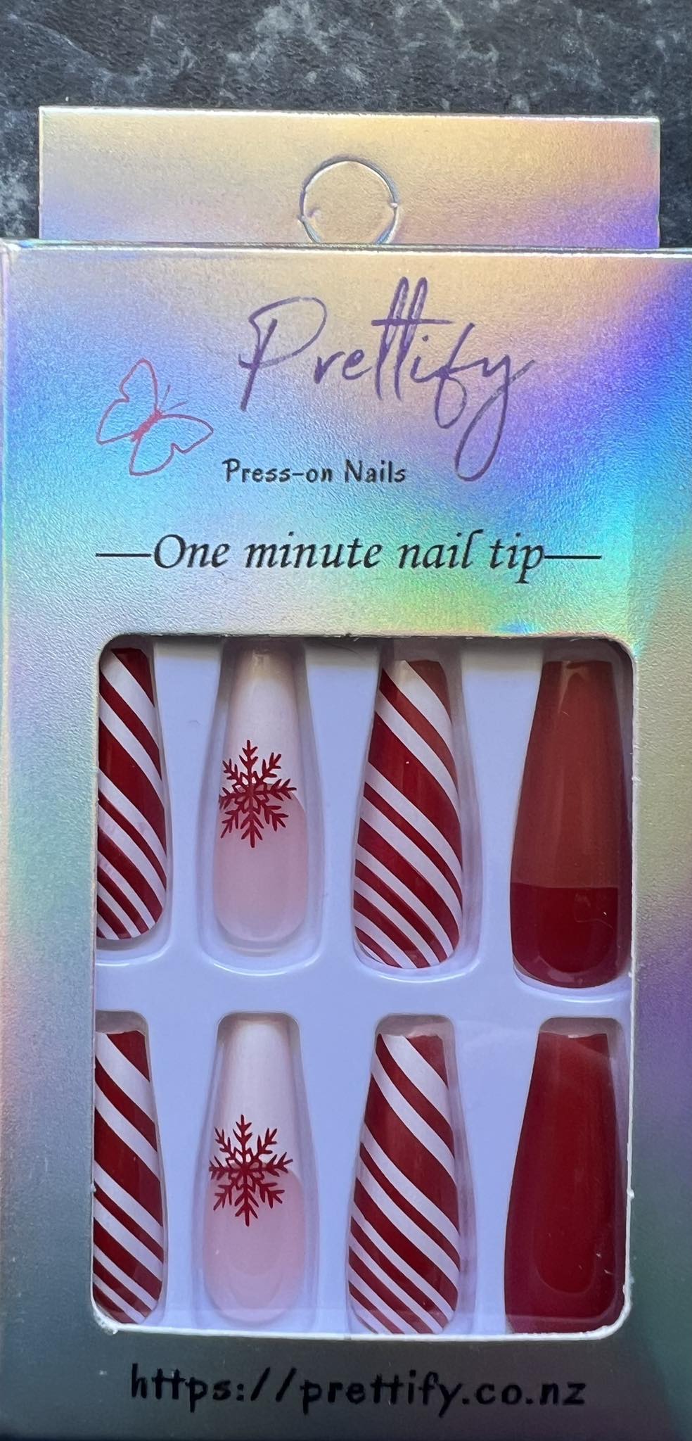 Christmas Theme - White Tips & Red & White Stripes & Snowflakes 24pcs #SD006