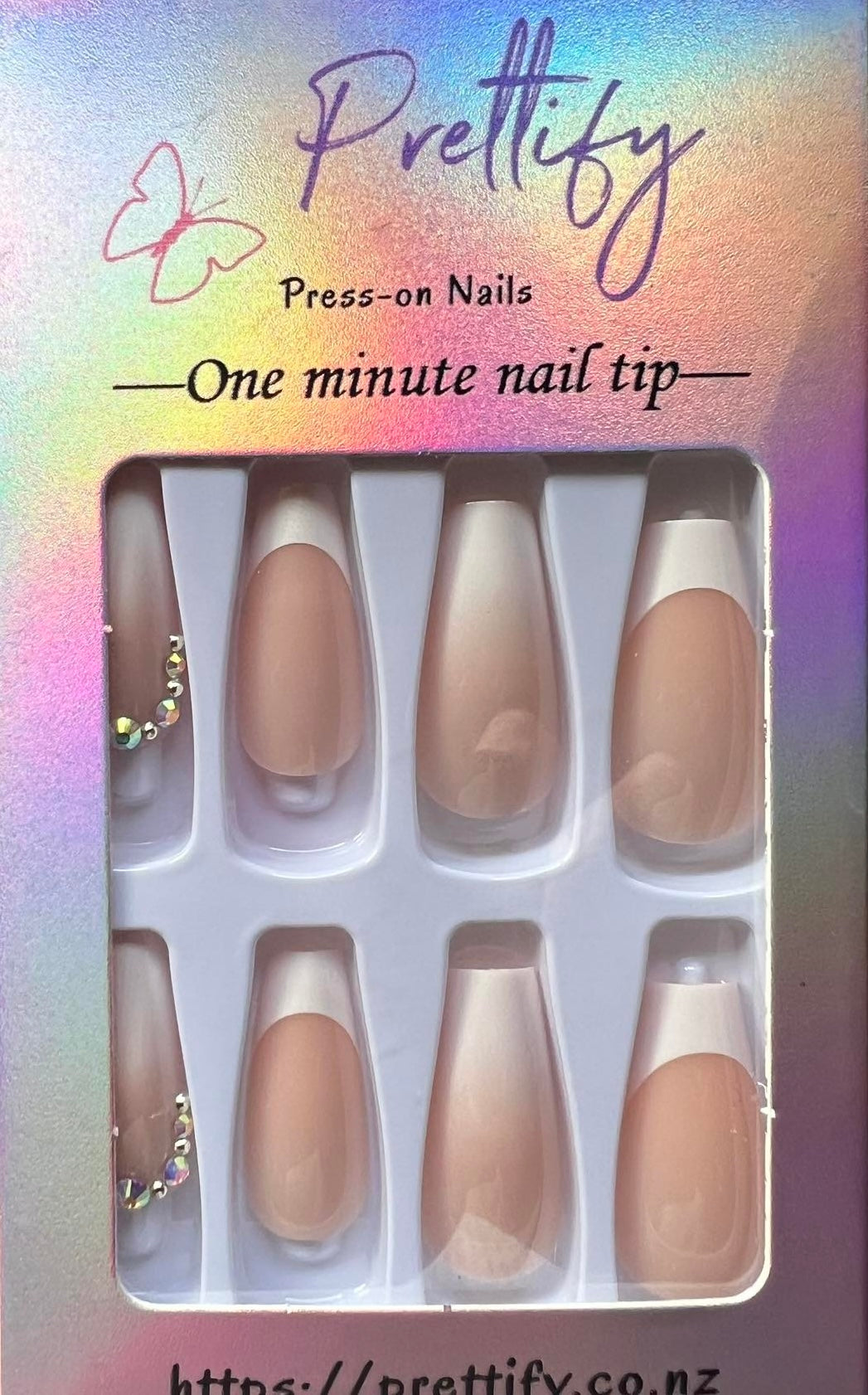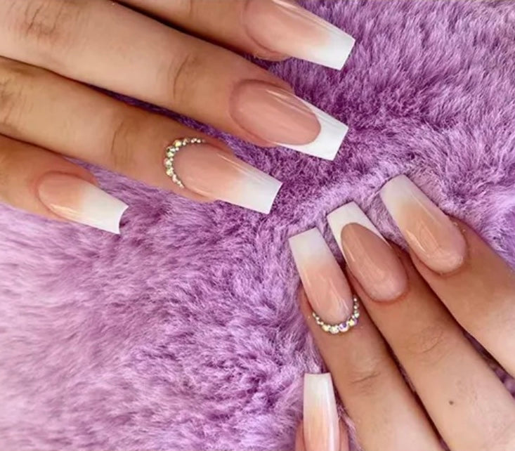 1 Set (24pcs) French Tip Press on Coffin Nails