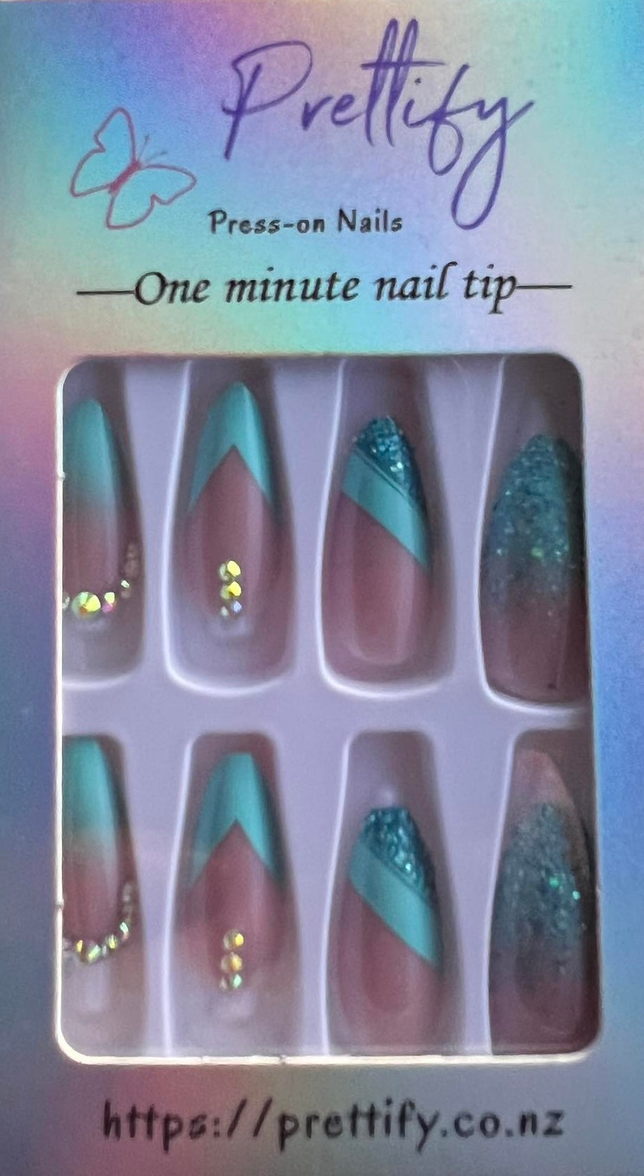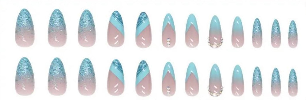 Turquoise Tips with Turquoise Glitter & Jewels 24pcs #Z670